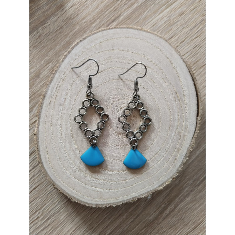 J’ai utilisé une fantaisie en vieil argent en forme de losange ajouré, que j’ai agrémenté d’un petit losange de couleur bleu.