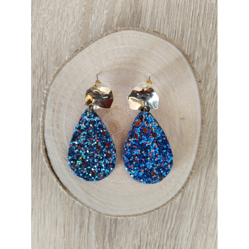 La fantaisie en forme de goutte est pailletée au recto et au verso.