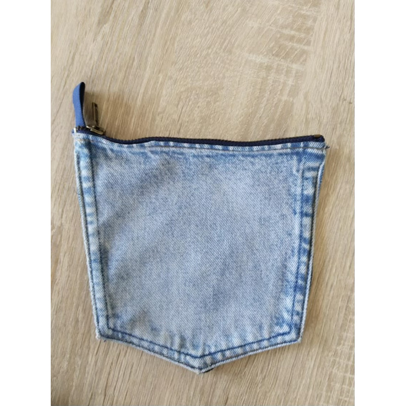 Cette pochette a été réalisée avec de la récupération de jeans.