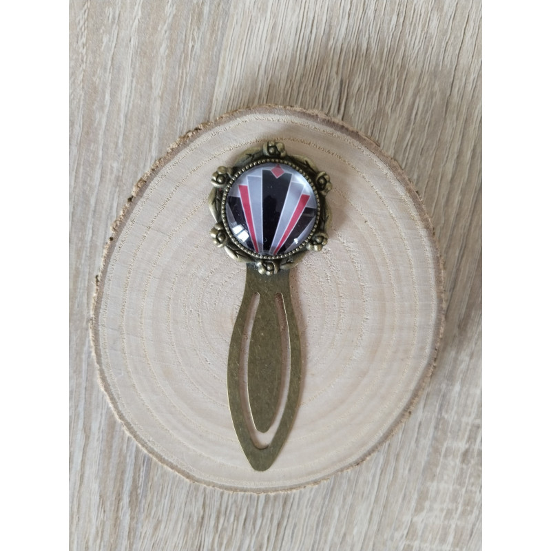 La fantaisie s’inspire d’un style Art Déco représentant un éventail imagé, sous une capsule en résine.