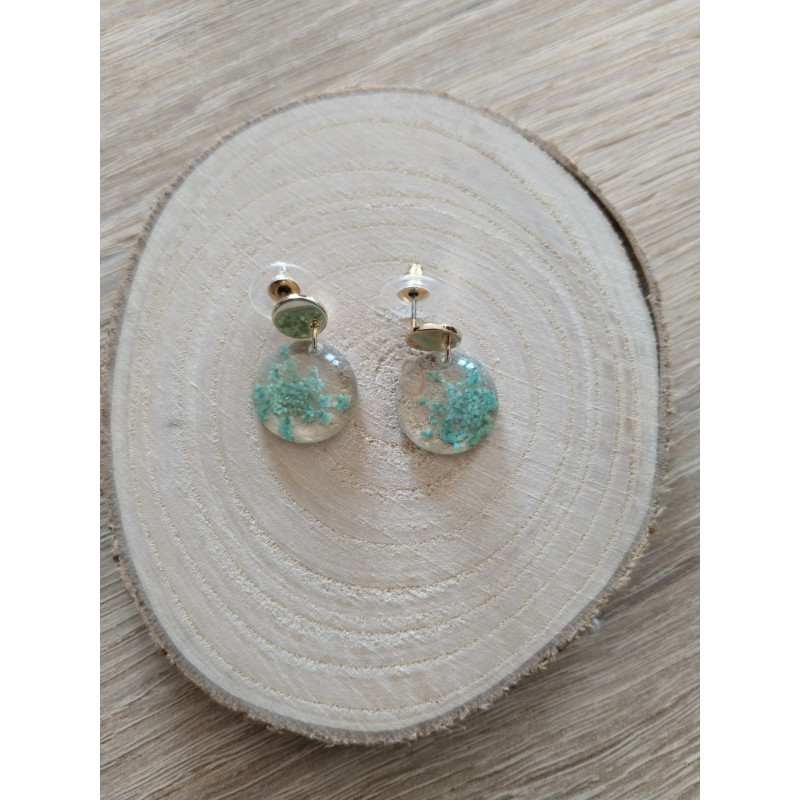 La capsule en résine renferme une petite plante verte. Le tout est harmonieusement rehaussé par une fantaisie dorée.