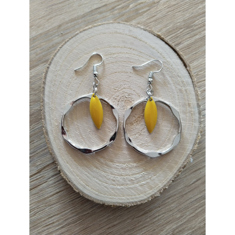 Si vous aimez la couleur jaune, j’ai crée un autre modèle de boucle, comme sur la photo.