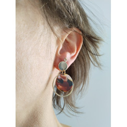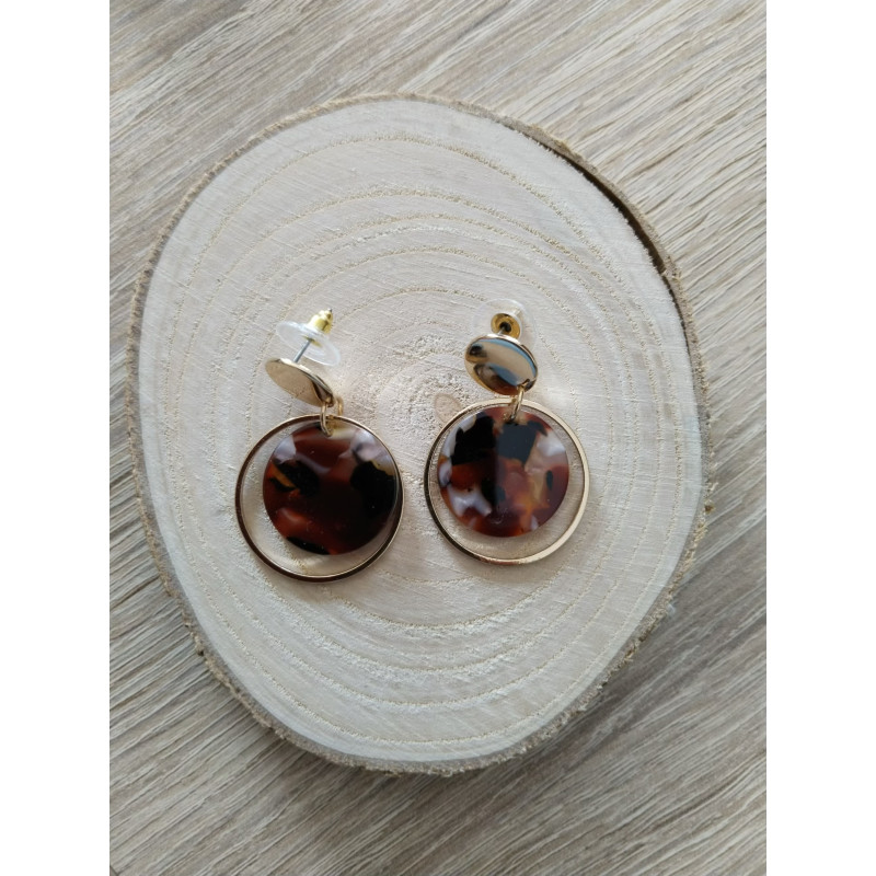 Cette boucle est originale avec sa pastille en acétate rehaussée par un cercle doré. J’adore tout particulièrement l’effet rond et doux qui se dégage de ce bijou.