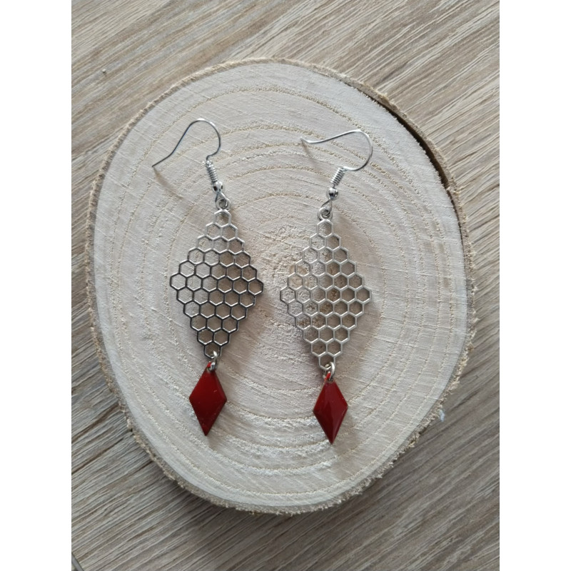 J’ai utilisé une fantaisie en vieil argent en forme de losange ajouré, que j’ai agrémenté d’un petit losange de couleur rouge.