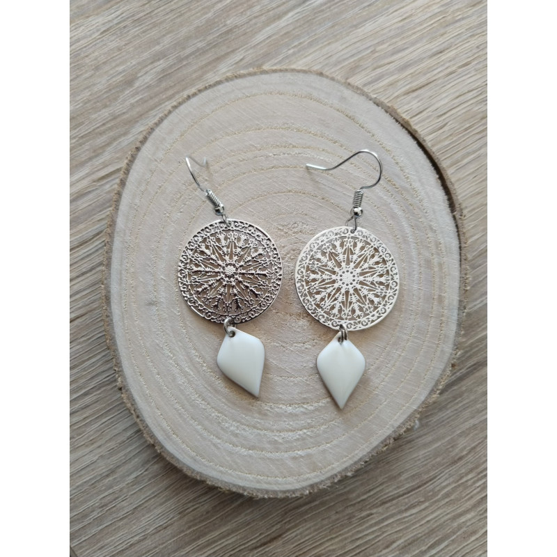 Cette collection Arabesque est à la fois originale et contemporaine. La petite fantaisie de couleur blanche rehausse vraiment la boucle d’oreille.