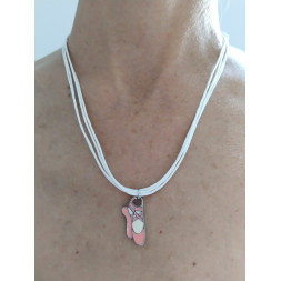 Le cordon est de couleur blanche. Il mesure entre 46 cm et 50 cm de longueur, grâce à sa chaîne de rallonge.
