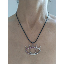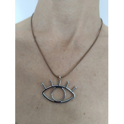 Ce collier existe aussi avec un cordon en cuir de couleur marron, comme sur la photo.