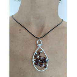 J’ai créé ce pendentif avec du fil d’aluminium et des perles translucides de couleur violette.