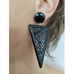 J’adore ce style rétro avec le triangle inversé. Le support est en plastique et recouvert de simili cuir.