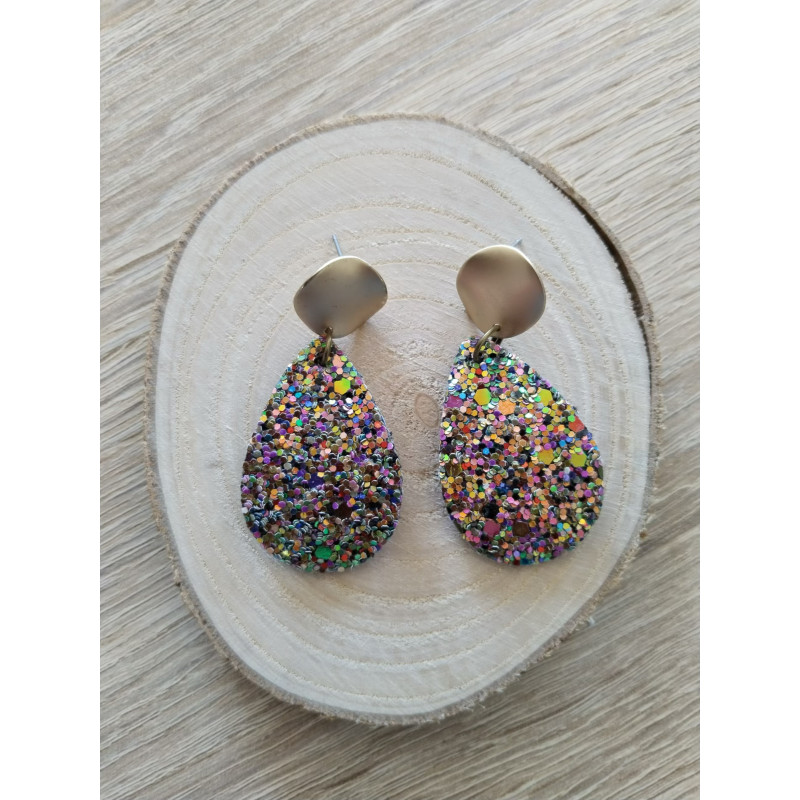 La fantaisie en forme de goutte est pailletée au recto et au verso.