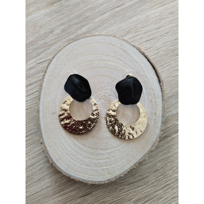 Cette boucle apporte aussi beaucoup d’éclat à vos tenues les plus classiques et sa fantaisie dorée et martelée.