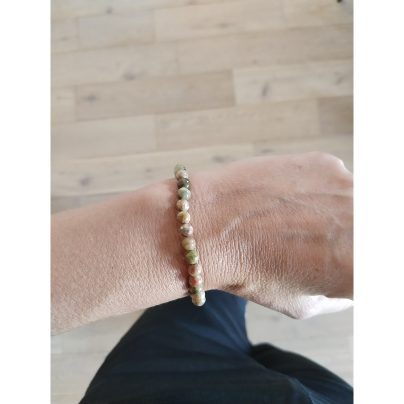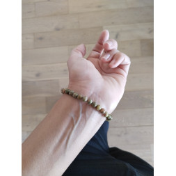 Ce bracelet est monté sur un cordon en élastique et il convient pour des poignets de 18 cm.
