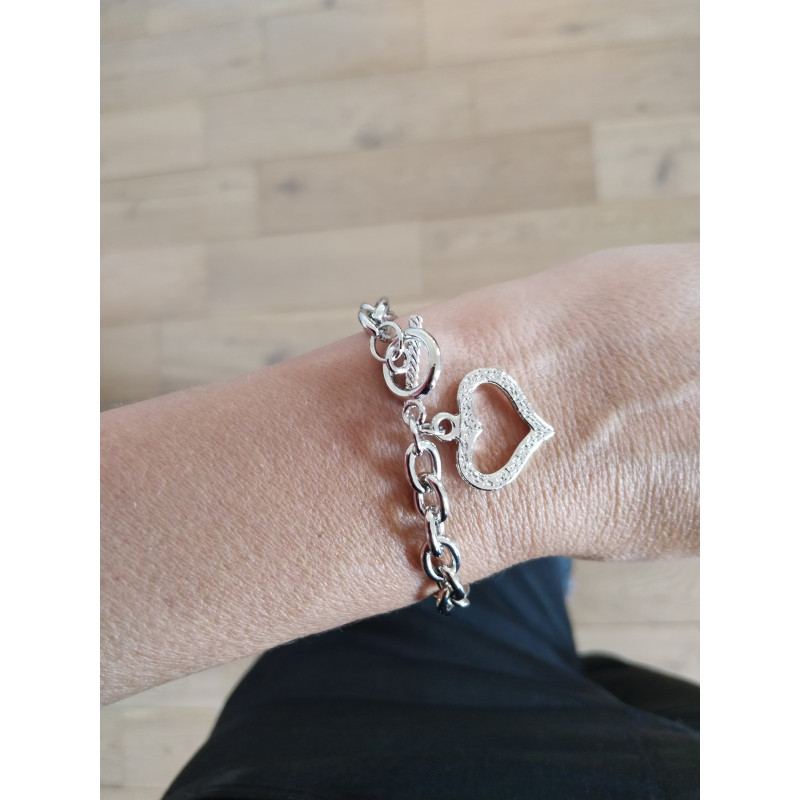 Ce modèle fait ressortir le cœur argenté avec des petits strass.