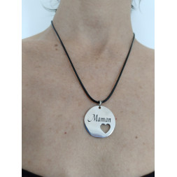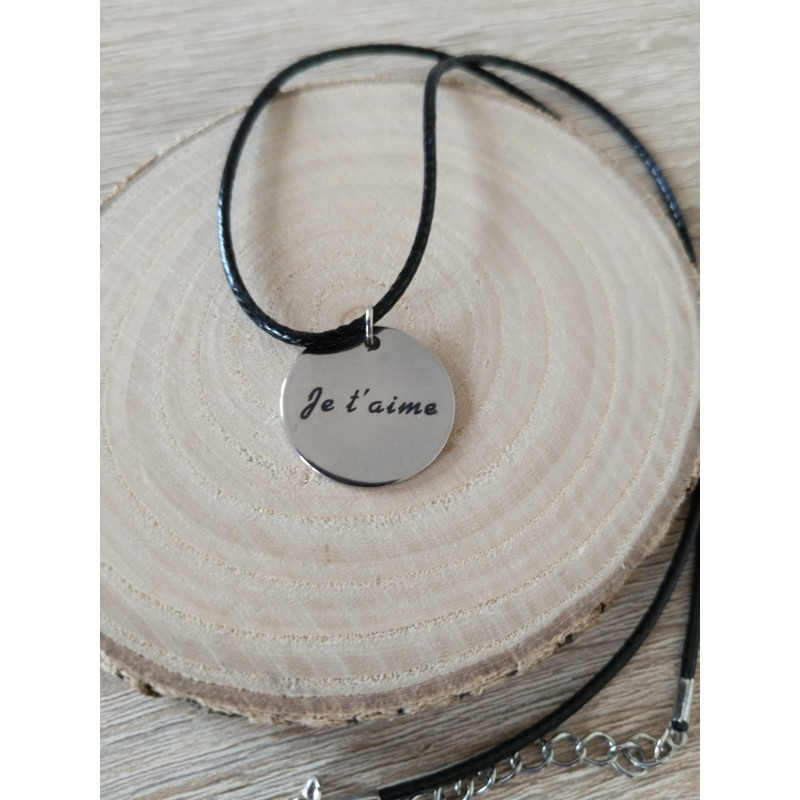 Le cordon en cuir est de couleur noire. Il fait entre 44 cm et 48 cm de longueur, grâce à sa chaîne de rallonge.