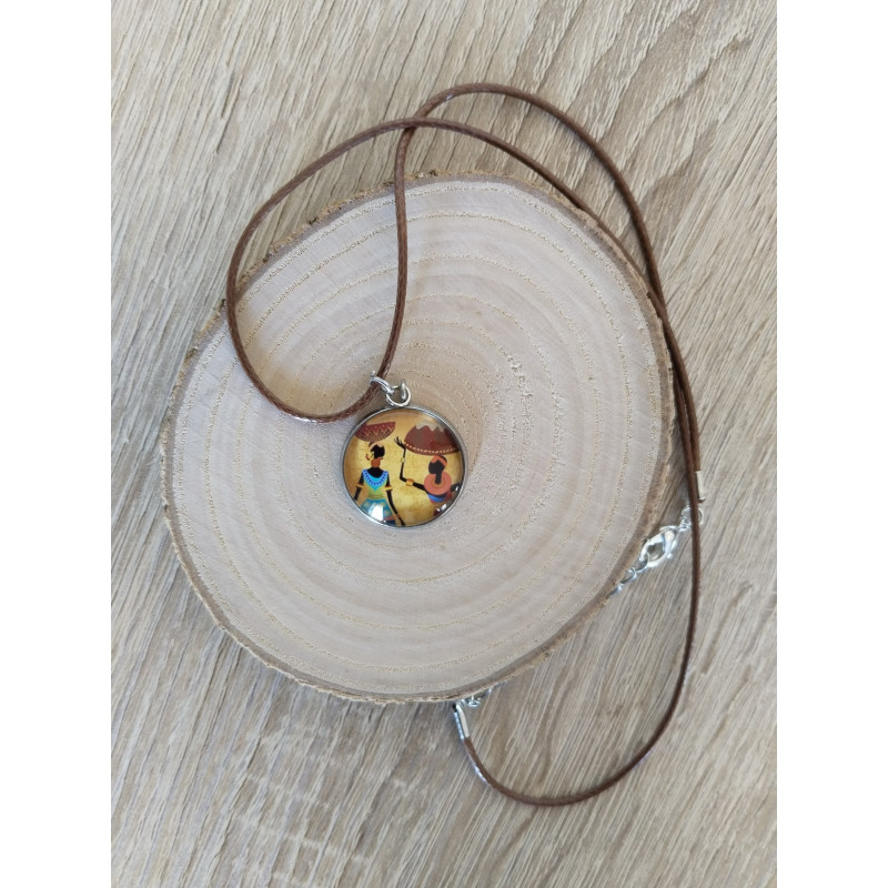 J’aime beaucoup l’univers de ce collier avec 2 femmes africaines qui portent un panier sur leur tête.