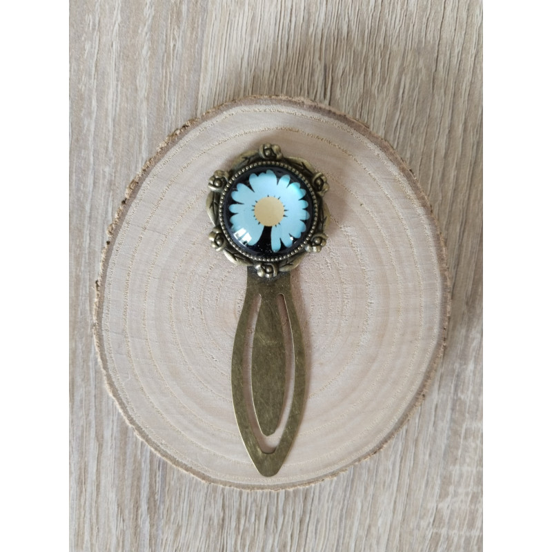 La fantaisie représente une marguerite bleutée, sous une capsule en résine.