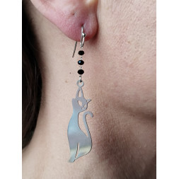 Les petites perles apportent toute son originalité à la fantaisie en forme de chat allongé, en métal.
