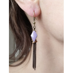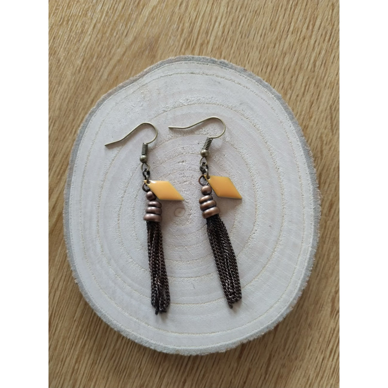 La fantaisie en pampille de couleur bronze est rare et originale. Le losange orange donne tout son éclat à la boucle.