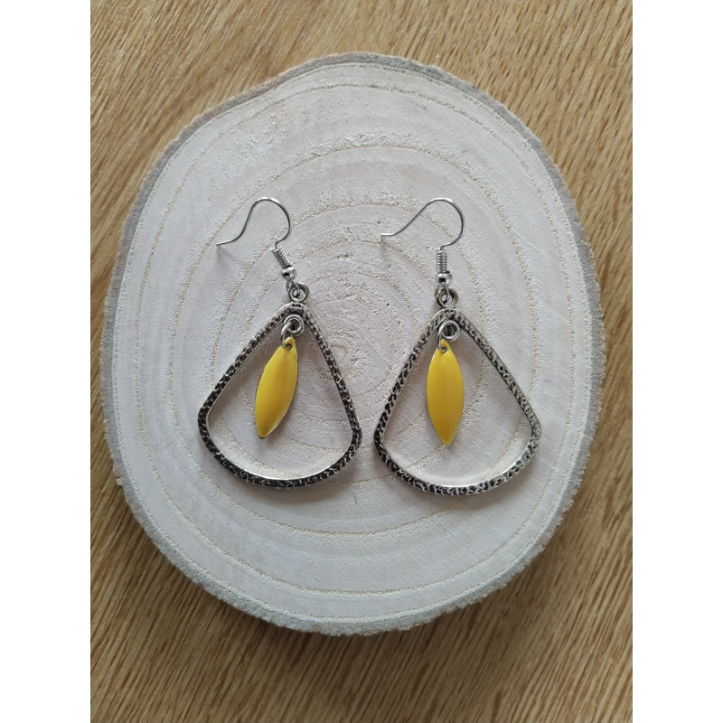 Pour ce modèle, j’ai utilisé une forme argentée en trapèze avec une goutte couleur soleil. Le rendu est très surprenant.
