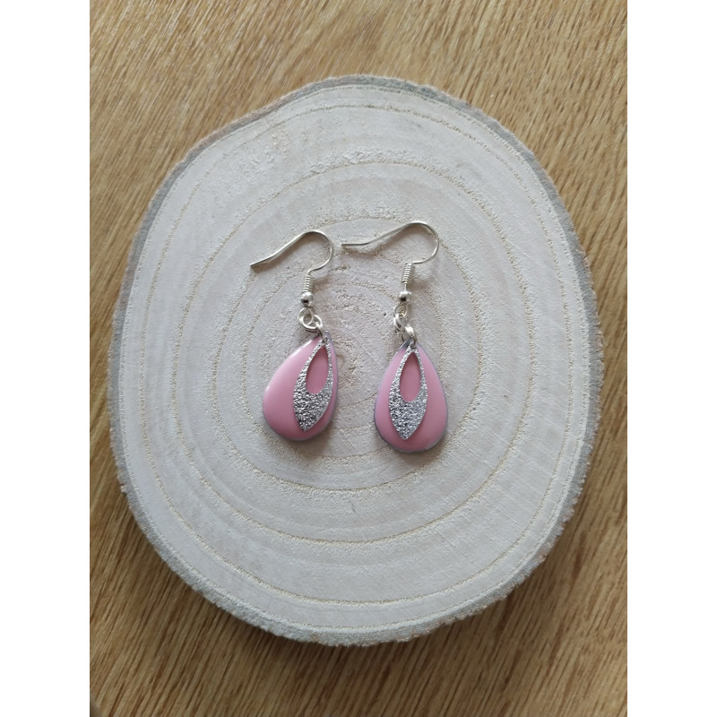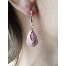 J’ai réalisé ce modèle avec une fantaisie argentée et pailletée sur une goutte de couleur rose.