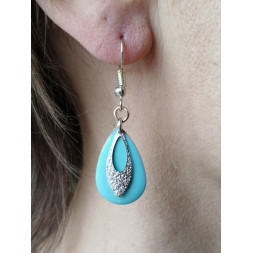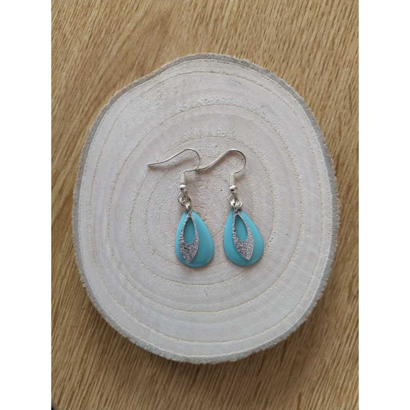 J’ai réalisé ce modèle avec une fantaisie argentée et pailletée sur une goutte de couleur bleue.