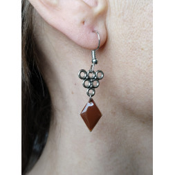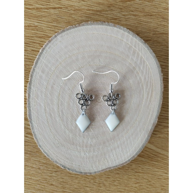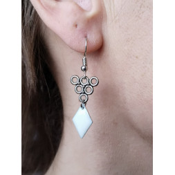 Pour ce modèle, j’ai assemblé une forme triangle en vieil argent avec un losange de couleur blanche.