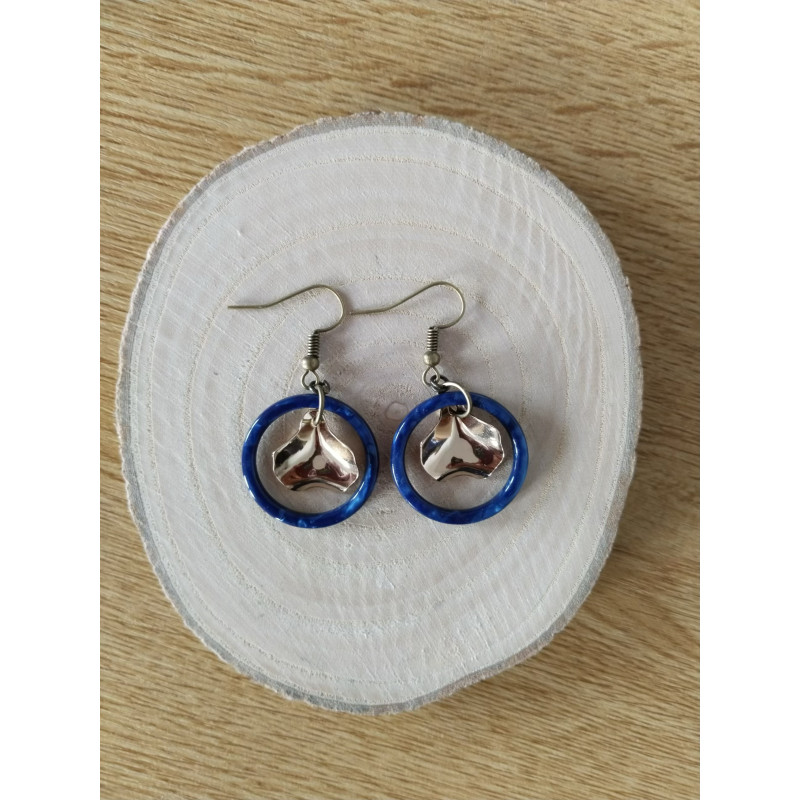 J’ai utilisé un cercle en résine de couleur bleue, agrémentée d’une fantaisie en forme de petite feuille dorée.