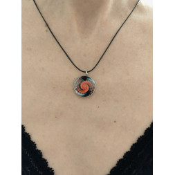 Le pendentif mesure 2 cm de diamètre et la capsule est en résine.