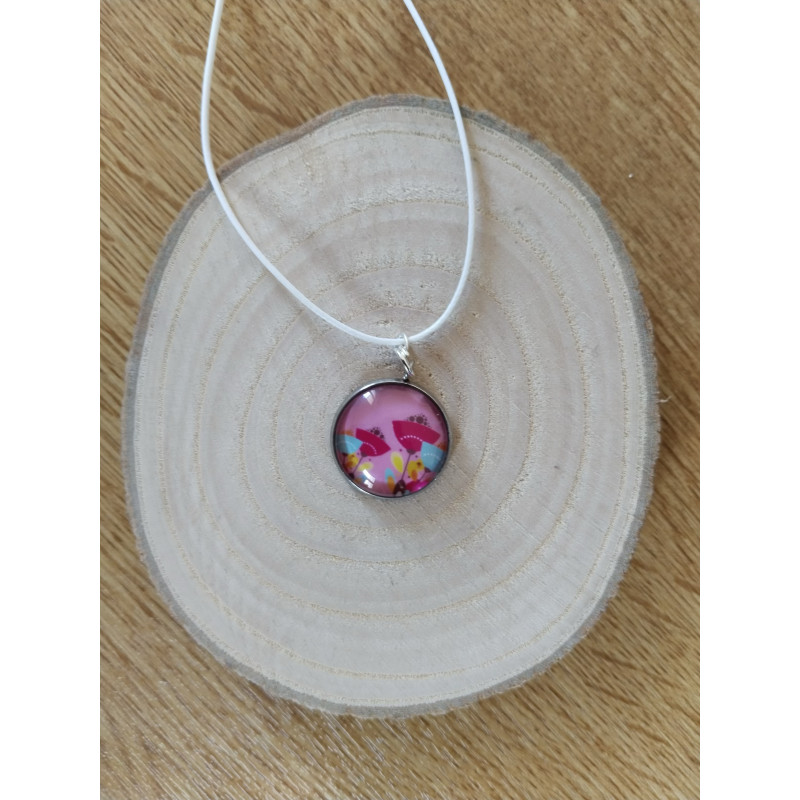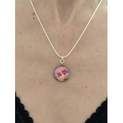 Le pendentif mesure 2 cm de diamètre et la capsule est en résine.